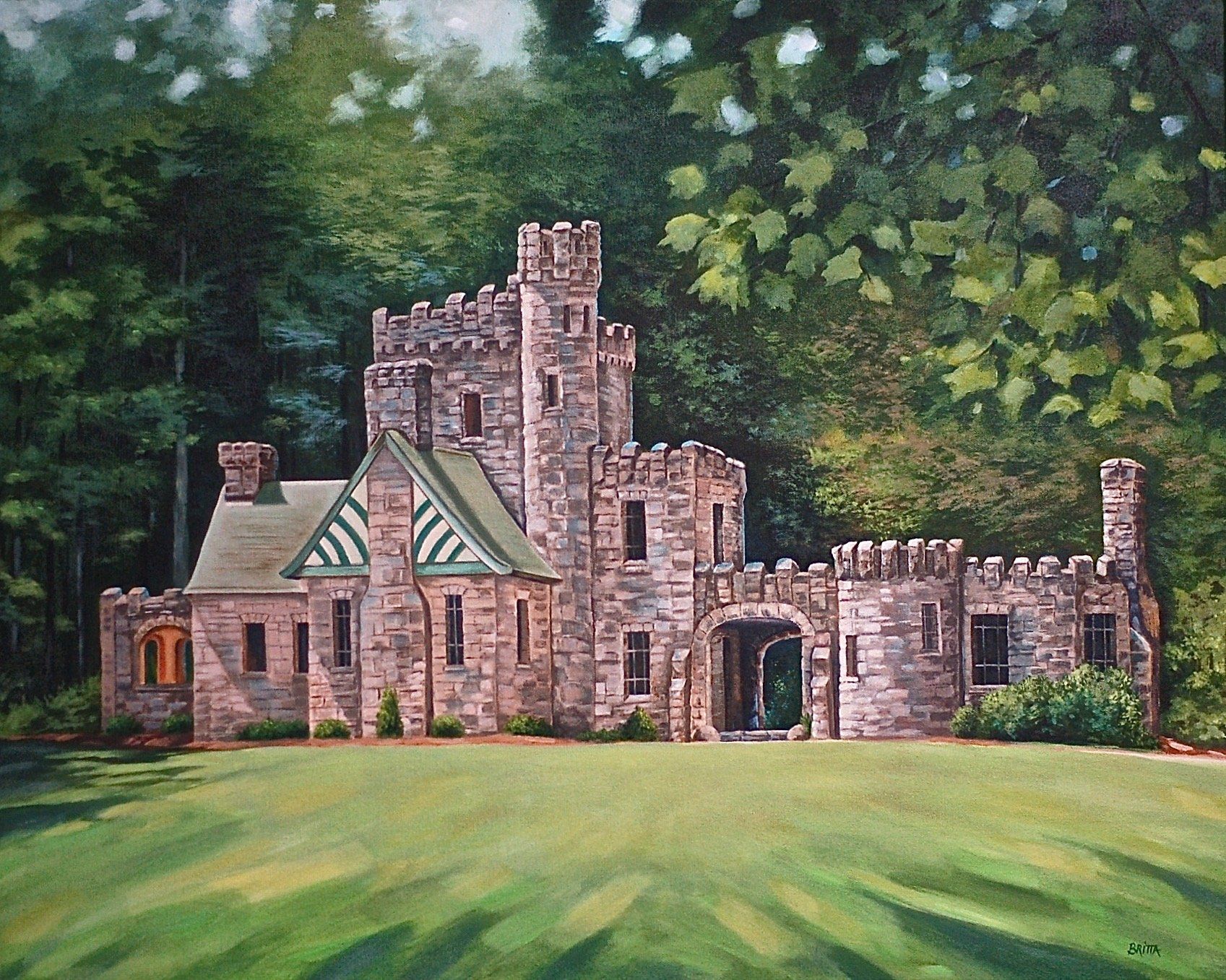 This is a painting of local area atttractions for the restaraunt Sunny St. Cafe. Squire's Castle is popular as it has a rich history behind it, hiking trails and is a popular wedding photo location.
