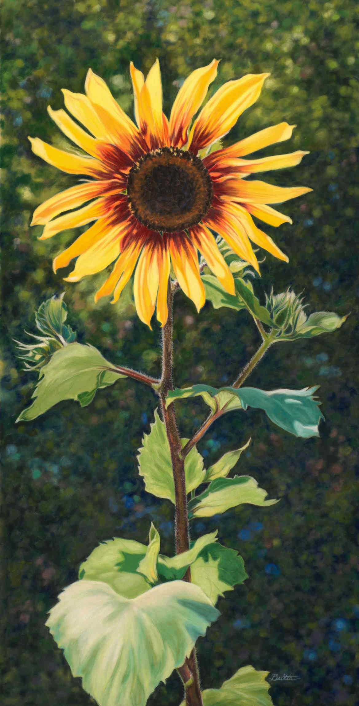 I enjoy pastels for their instant color and blending capabilities. As an avid floral & garden enthusiast, I grew this sunflower along with other varieties one summer & this one stood out from the rest. I enjoyed the strong contrast of color and bright light source wich is prevalent in much of my work.