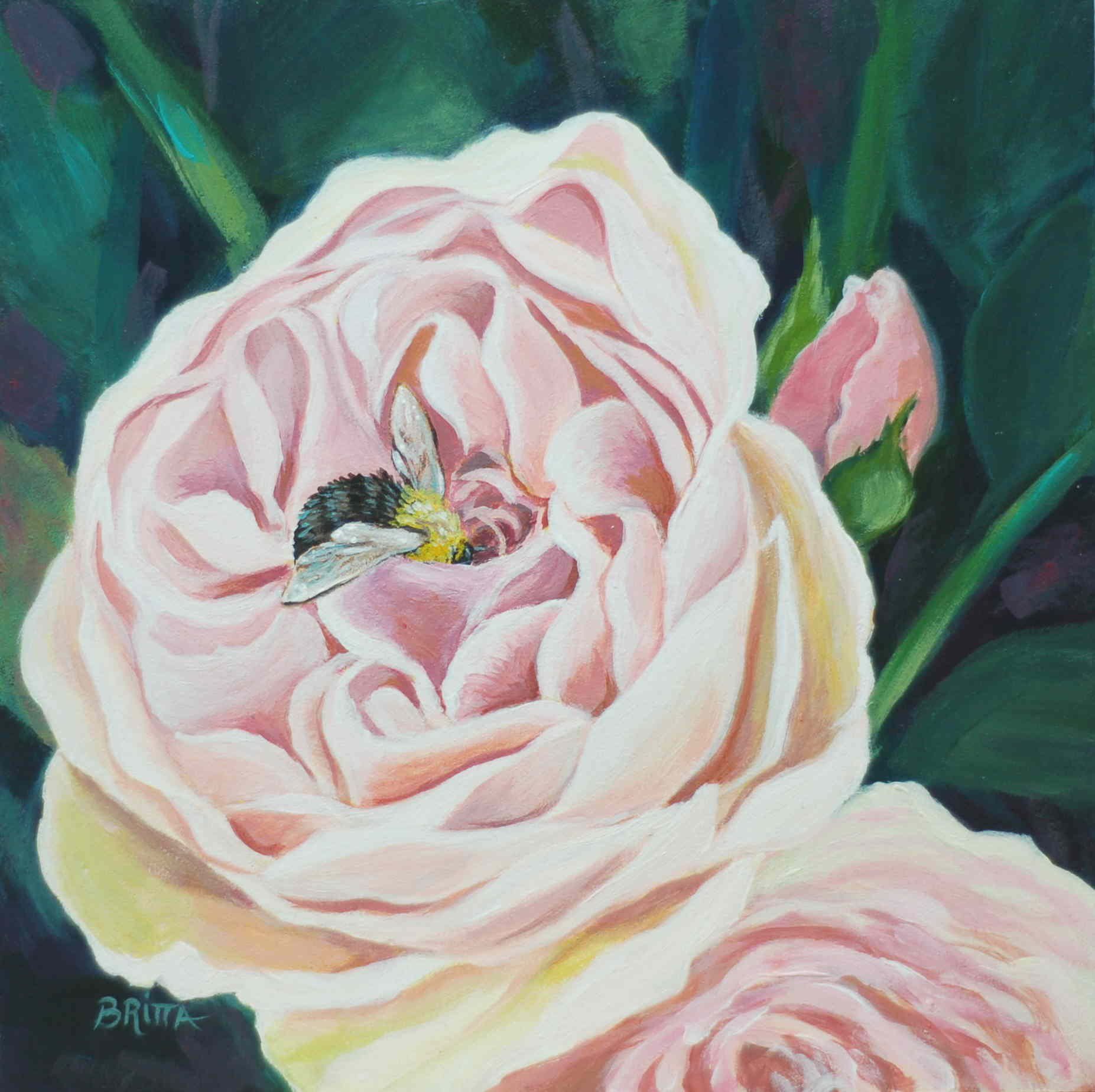 In this painting, I wanted to concentrate on the intricacies of the flower and insect. It's a small painting (6"x8") but large on the image and detail.