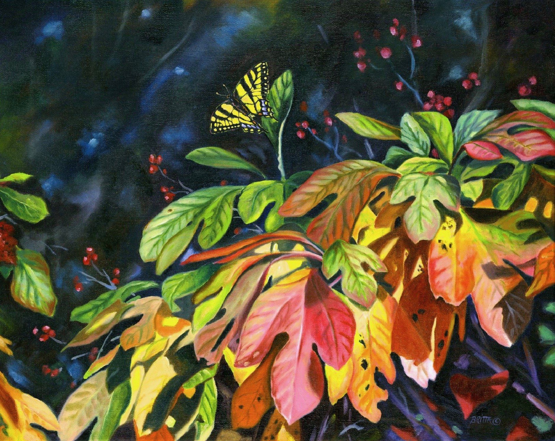 This painting was inspired by a particularly colorful autumn in our back field. I felt that the colors of the leaves would be perfect to capture in oil, as they all blended into each other just as the passing of the seasons do.