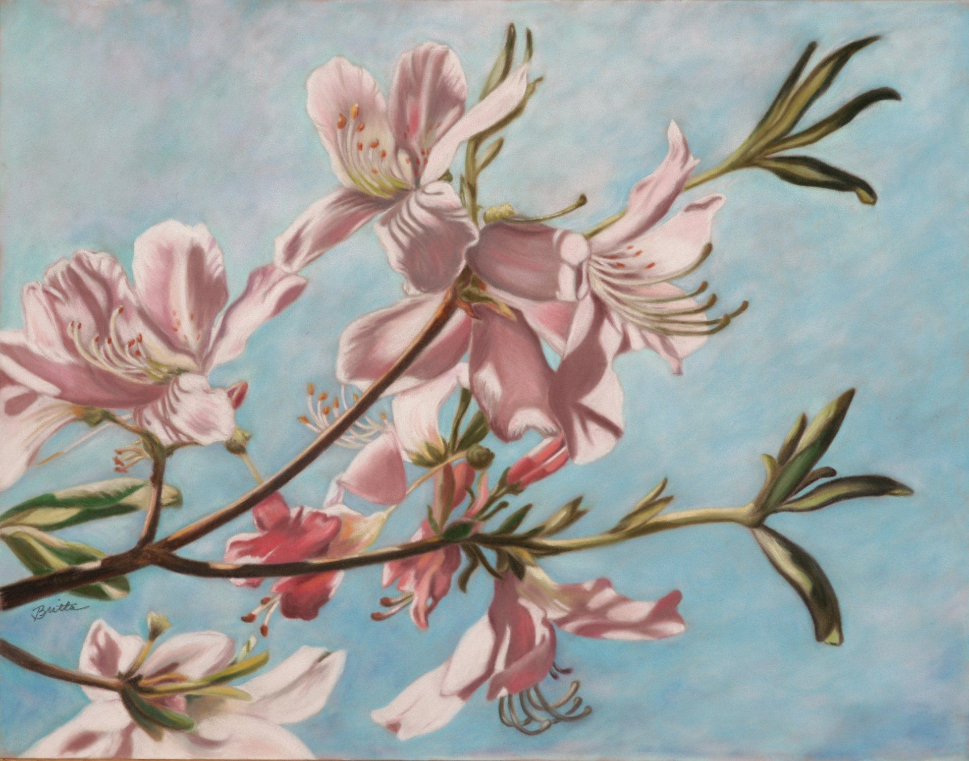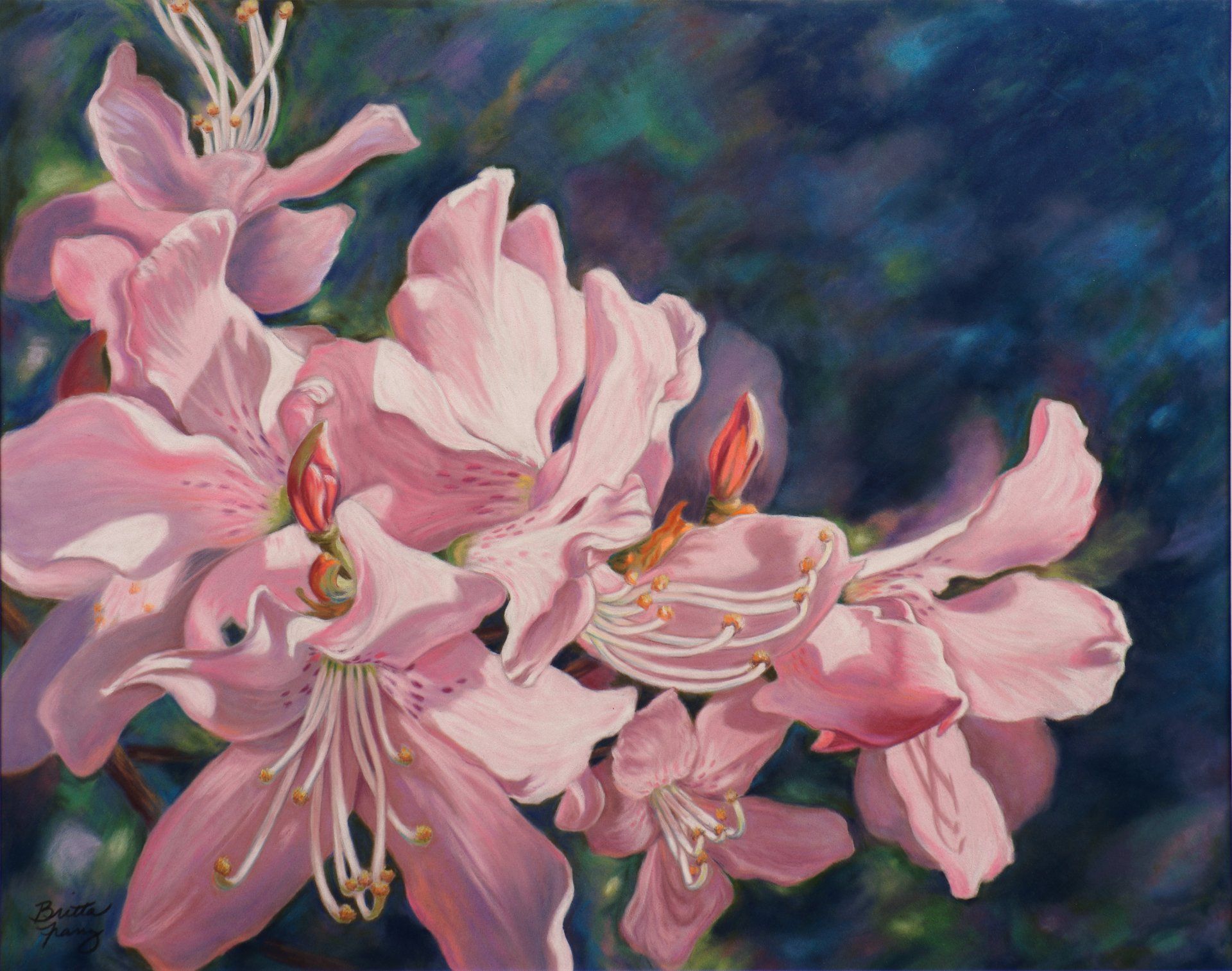 Lilies are a favorite not only for their fragrance but also for their giant blooms and numerous flowers on the stem. I felt this piece had to be large (20'x30") to amplify the statement they were making.